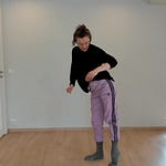 We begin by staying more or less on the spot, and then gradually expand outward, allowing ourselves to shift and travel through the space. We explore the edges of our space, shift through levels, and take space.